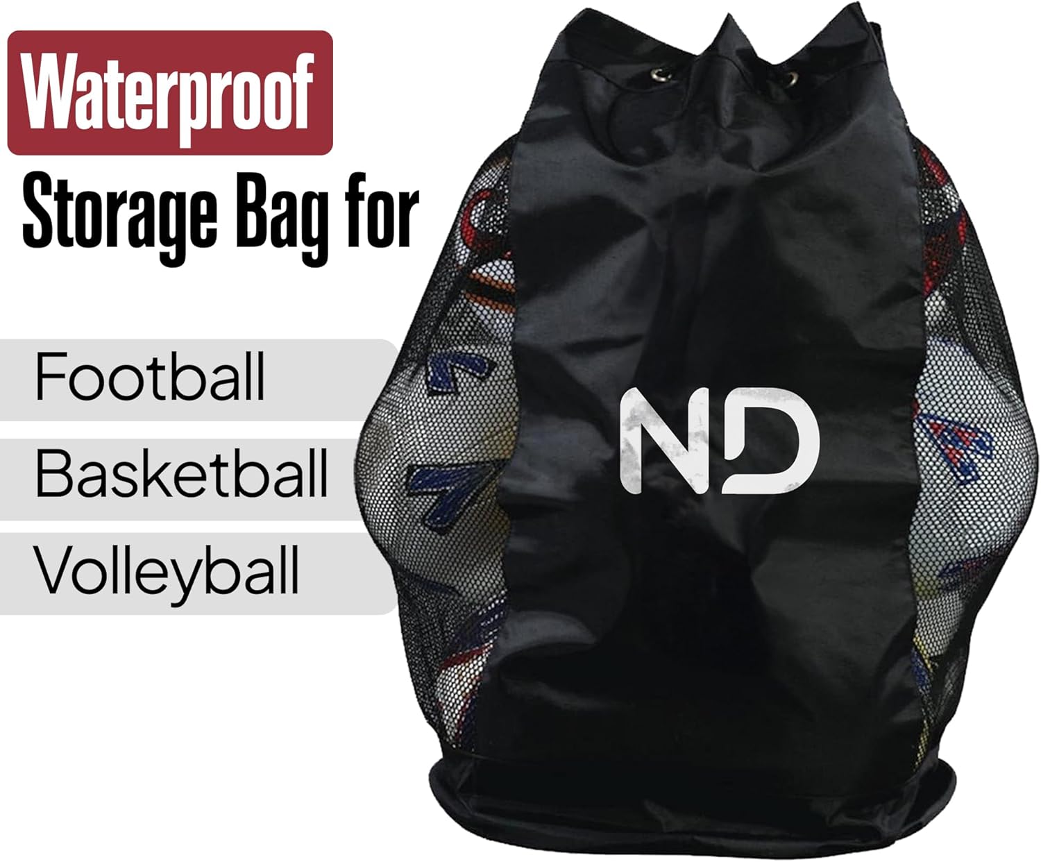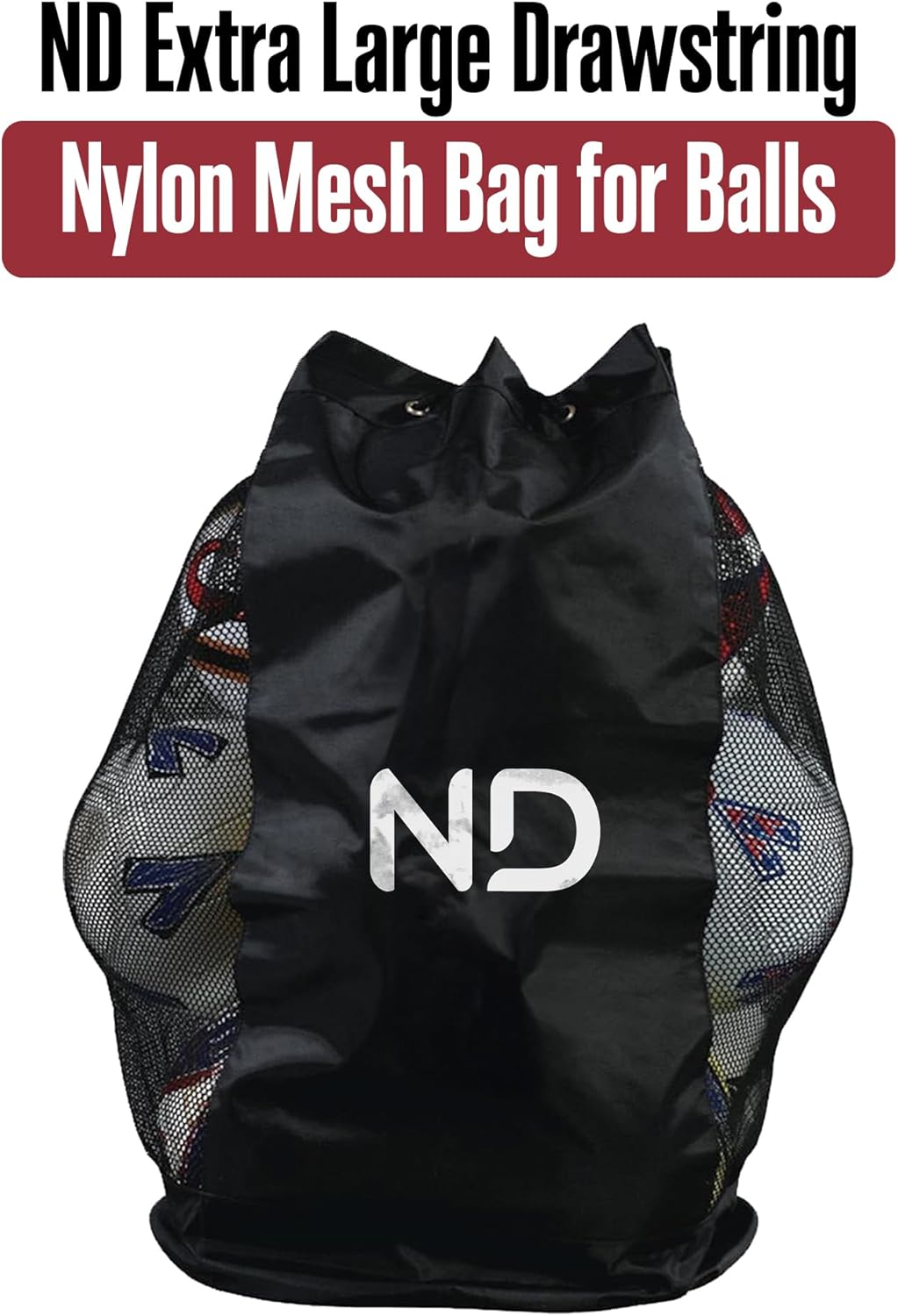 ND Extra Large Drawstring Mesh Sack – Waterproof Nylon Storage for Footballs, Basketballs, Volleyballs – Heavy-Duty Training Equipment Carrier