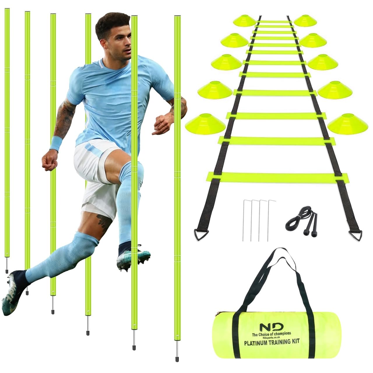 ND Sports Training Kit – 6m Ladder, 6 Poles, 10 Cones, Jump Rope, 4 Pegs & Bag – Complete Speed & Agility Set for Football, Cricket & Multi-Sport